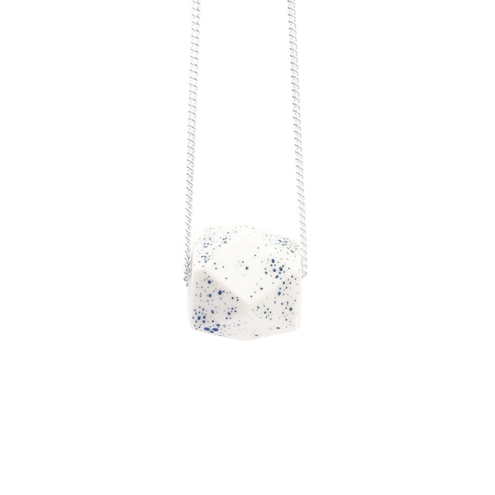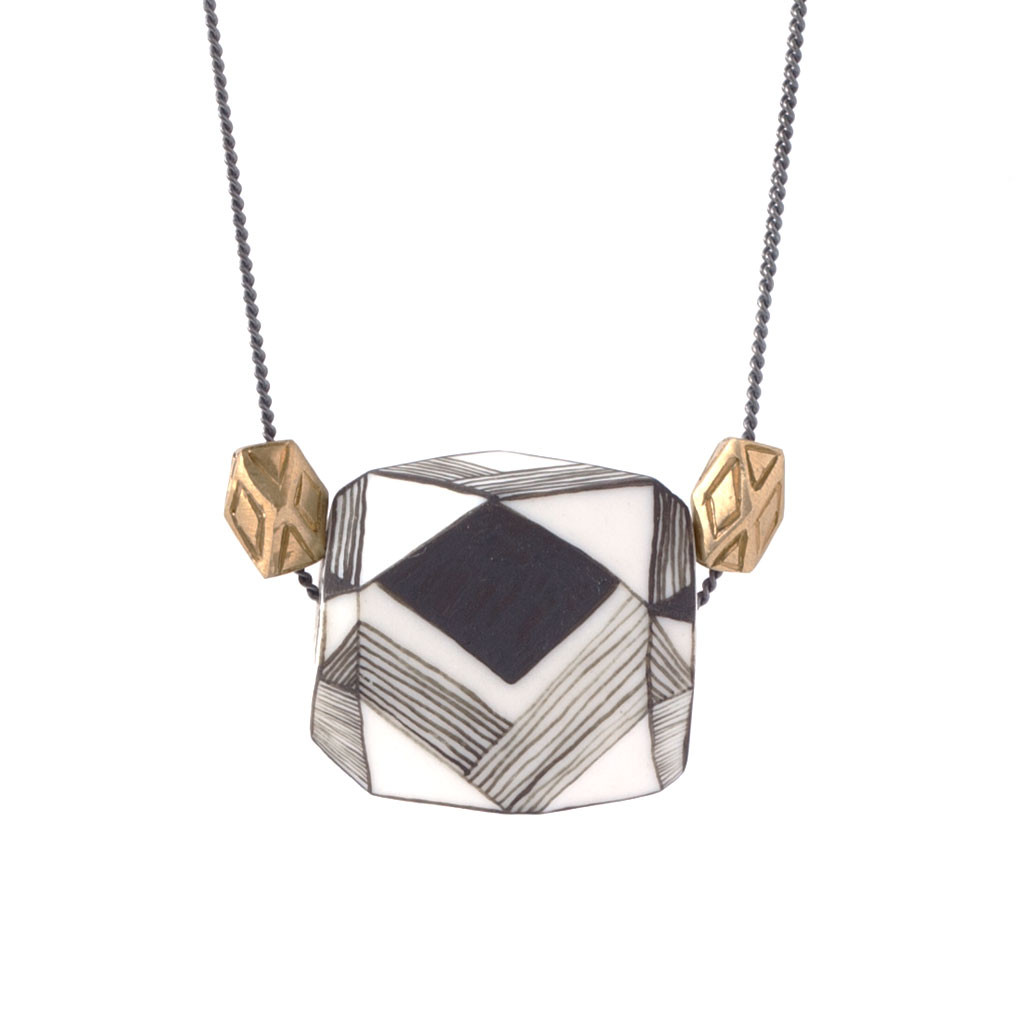 Triple Rhombus:  Hand painted faceted porcelain bead with small brass beads and oxidised silver chain