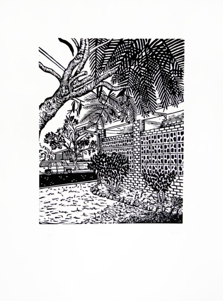 Fiona Watson is our featured artist this Wednesday.  She lives on the southern Gold Coast and creates beautiful lino prints which deliver an overwhelming sense of nostalgia.    Many of the works feature  fibro houses, breeze blocks and caravans perched amongst simple seaside vistas.  She takes the old back to a time when it was new.  These aren’t just pretty pictures;  they are happy memories.  Fiona hand cuts and prints the works herself but was able to take some time out to answer a few questions for Collate Culture…